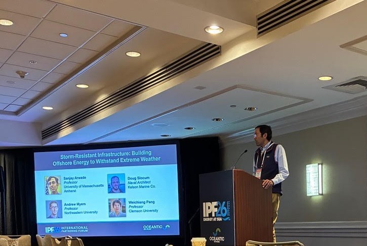 ARROW faculty Sanjay Arwade (UMass Amherst), Andy Myers (Northeastern University), and Weichiang Pang (Clemson University), along with Doug Slocum (Kelson Marine) presented at the 2026 Oceantic Network International Partnering Forum (IPF) this week as part of the panel “Storm-Resistant Infrastructure: Building Offshore Energy to Withstand Extreme Weather”