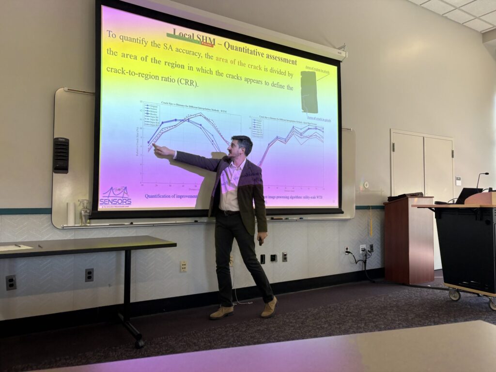 In this seminar, Dr. Sabato presented new findings in stereo camera calibration and stereo-matching algorithms that enable the use of three-dimensional (3D) computer vision for structural dynamics measurements of wind turbine blades. Dr. Sabato also introduced Stack-Average, a novel image-processing technique that enhances damage localization in wind turbine blades from long-range images (i.e., 50+ m). By exploring these emerging monitoring strategies, the session highlighted future directions in blade health assessment and their implications for improving the reliability and sustainability of wind energy systems.